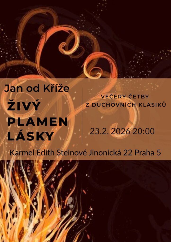 Milí, v pondělí 24.11. 2025 pokračujeme se čtením Živý plamen lásky z Jana od Kříže. Je možné přijít už na mši v 19:00. Srdečně zveme.